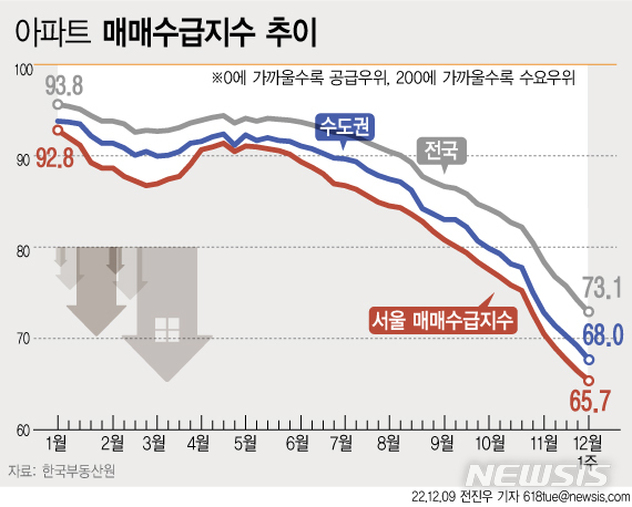 [그래픽] 전국 아파트 매매수급지수 또 최저치