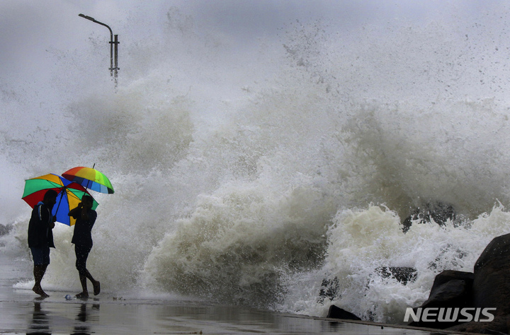 첸나이에 사이클론 접근, 파도 피하는 주민들