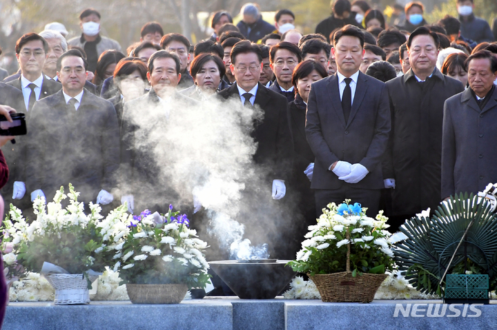 노무현 전 대통령 묘역 참배하는 이재명 대표