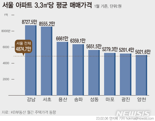 [그래픽] 서울 아파트 평당 평균 매매가격