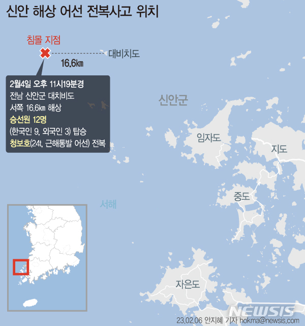 [그래픽] 신안 해상 전복 '청보호 어선' 인양작업 본격화