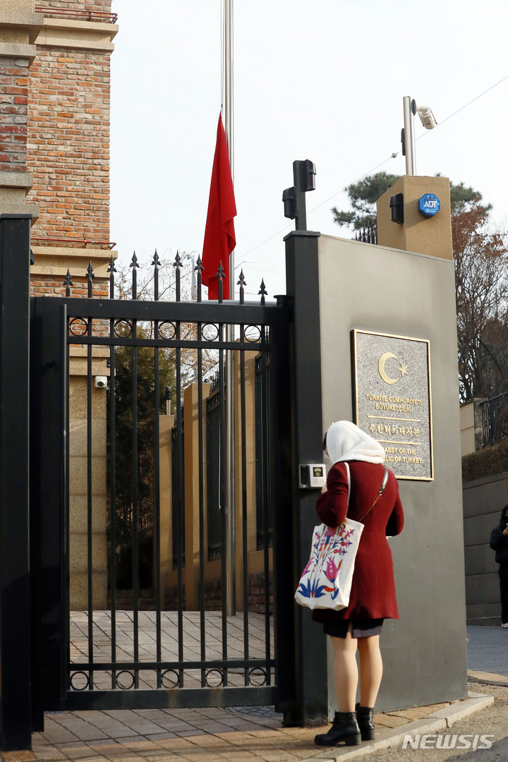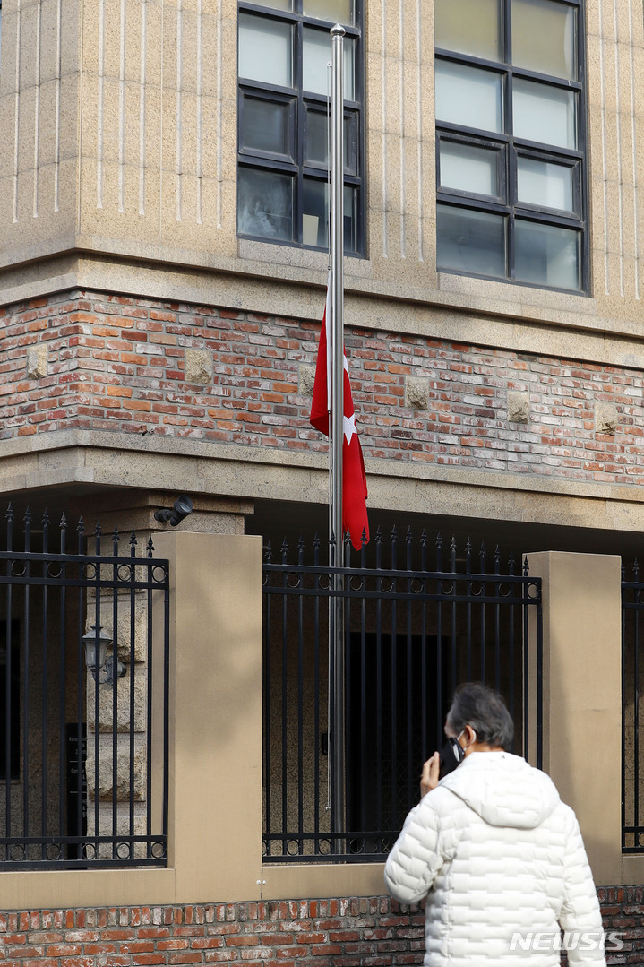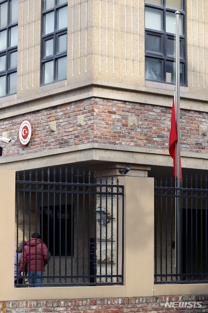 조기 게양된 주한터키대사관