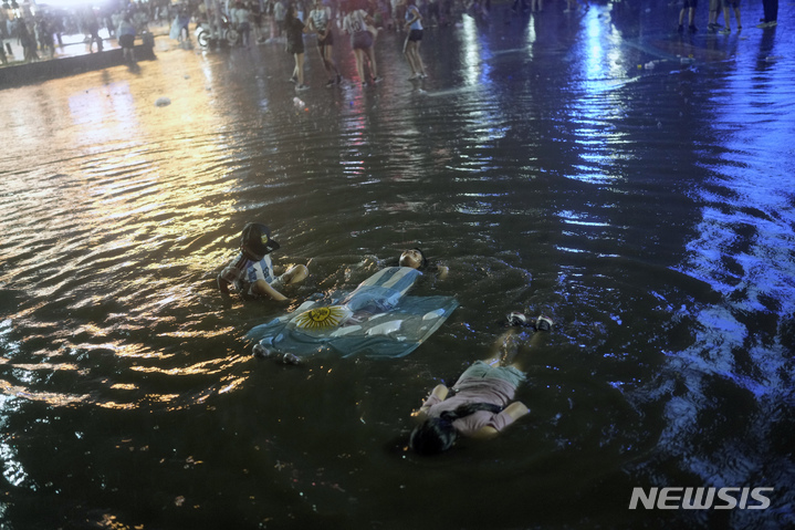 "이겼다" 빗물 웅덩이에 뛰어든 아르헨티나 팬들
